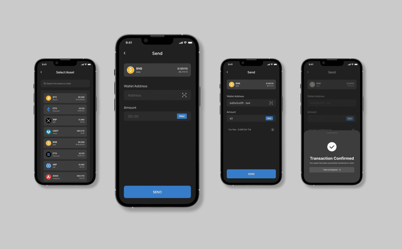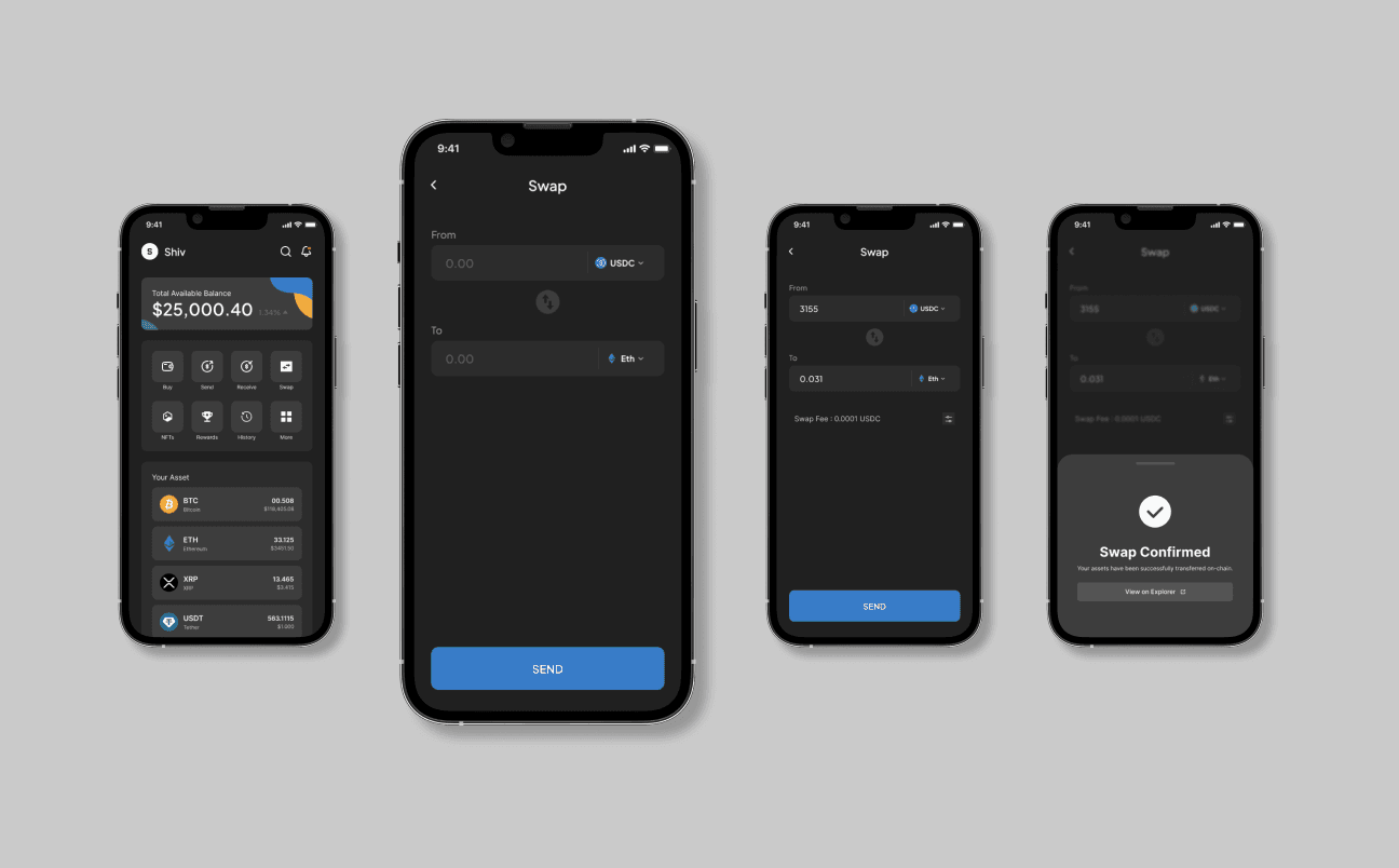 A conceptual redesign of a multi-chain Web3 wallet focused on the three most critical user actions: buy, send, and swap. The experience rethinks how users interact with crypto by replacing technical complexity with familiar, intuitive flows